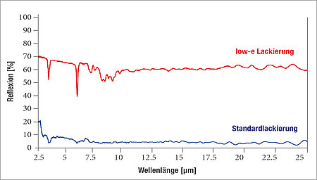 Mit ROWALID® TIM-95210 steht Kunden nun ein lösemittelhaltiges Produkt mit ausgezeichneten low-e Eigenschaften zur Verfügung. Eine entsprechende Lackierung von PVC-beschichteten Geweben resultiert in einer diffusen Infrarot-Reflexion von ca. 60 % und einer Emissivität von kleiner 0,3. Währenddessen weisen Standard-Produkte eine Reflexion von nur gut 5 % und eine Emissivität von etwa 0,9 auf. Diese besondere Eigenschaft von ROWALID® TIM-95210 lässt sich zum Beispiel für die Wärmeregulierung von Zeltkonstruktionen nutzen. Befindet sich die low-e Beschichtung auf der Außenseite des Zeltes, kann die Aufheizung durch solare Einstrahlung vermindert und der Energiebedarf für die Klimatisierung verringert werden. Wird wiederum die Innenseite mit einer low-e Lackierung versehen, gelangt weniger Wärme aus dem Zelt nach außen, und es muss weniger geheizt werden.