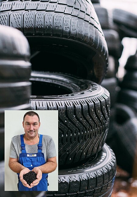 Gewonnen wird recovered Carbon Black durch den Pyrolyseprozess: Dabei handelt es sich um einen thermischen Prozess, bei dem Altreifen unter Ausschluss von Sauerstoff auf 250 bis 750° C erhitzt und so in kleinere Moleküle gespalten werden. Hierbei entsteht typischerweise ein hocharomatisches Pyrolyseöl (ca. 45 %), Roh-Pyrolyseruß (ca. 33 %), Recyclingstahl (ca. 12 %) sowie ein nicht kondensierbares Kohlenwasserstoffgas (ca. 10 %). Der Roh-Pyrolyseruß kann dann durch Vermahlung und Granulierung zu recovered Carbon Black aufbereitet und entsprechend weiterverarbeitet werden [1].