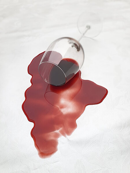 Links: Verschmutzte, abgewischte und gereinigte Tischdecke auf Vinyl-Basis mit dem Glanzlack ROWAKRYL G-34870W.